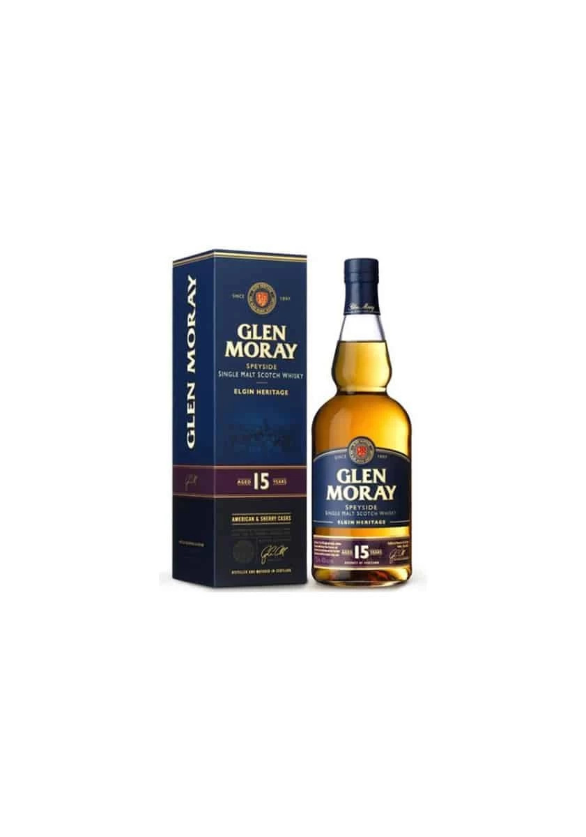 Ce Glen Moray de 15 ans d’âge a vieilli dans une combinaison de deux fûts différents : fûts de sherry et fûts de chêne américain. Le résultat est un single malt complexe avec une pointe d’épice et une fumée délicate sublimant les notes de fruits secs et de chocolat noir.