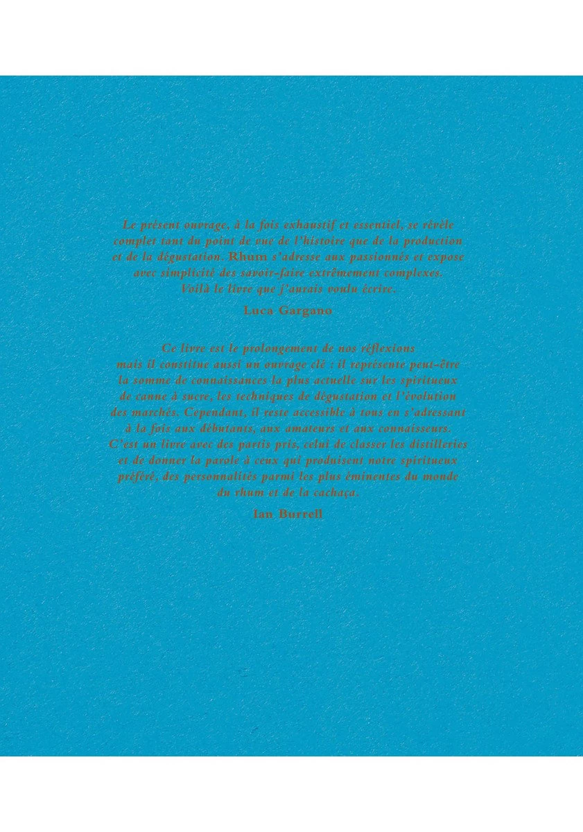 « Ce livre est un prolongement de nos réflexions mais il constitue aussi un ouvrage clé : il représente peut-être la somme de connaissances la plus actuelle sur les spiritueux de canne à sucre, les techniques de dégustation et l’évolution des marchés. Cependant, il reste accessible à tous en s’adressant à la fois aux débutants, aux amateurs et aux connaisseurs. C’est un livre avec des partis pris, celui de classer les distilleries et de donner la parole à ceux qui produisent notre spiritueux préféré, des personnalités parmi les plus éminentes du monde du rhum et de la cachaça. » Ian Burrell